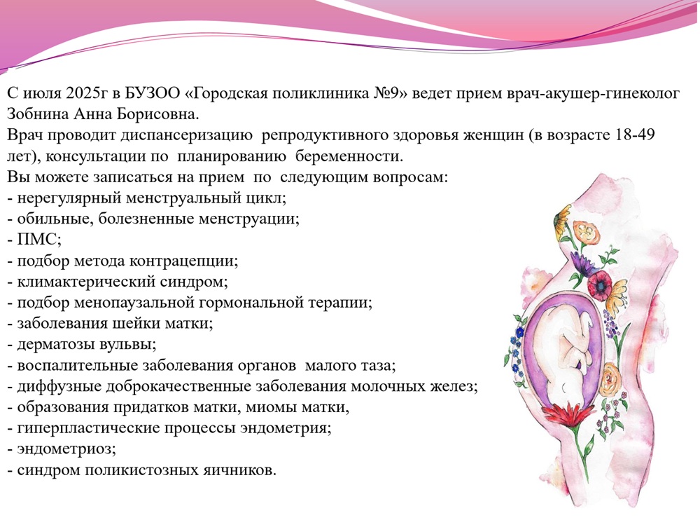 Прием акушер-гинеколога Зобиной А.Б.